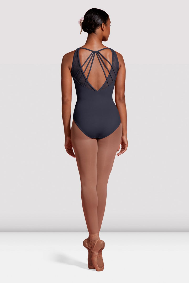 Our ladies Mirella Seville camisole leotard features a scoop neckline with a pleated bodice and deep V back design with intricate strap detailing. Part of the Ladies Mirella Seville collection, a classically elegant collection featuring patterned stretch lace in a trio of colours that delivers a dose of effortless sophistication.