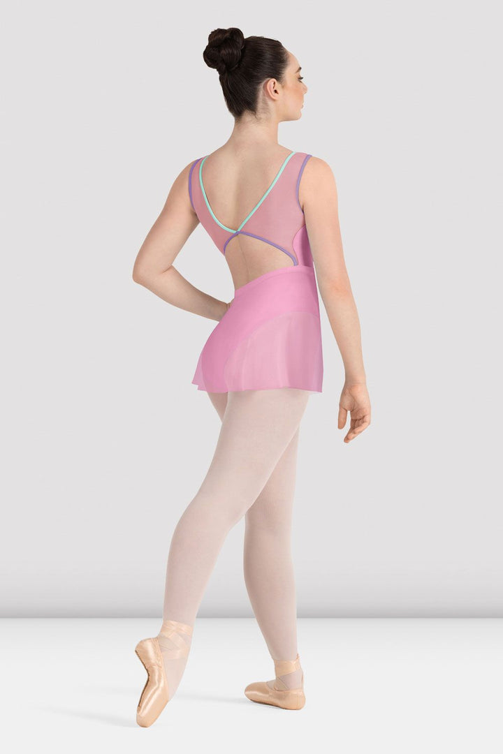 Elevate your ballet wardrobe with our Ladies Calypso Mesh Skirt, with a soft and stretchy waistband for comfortable and easy wear. The stretch mesh material falls softly to the upper thigh, with a curved side hem for a flattering fit. Part of our Ladies Calypso Collection; inspired by classical ballet silhouettes featuring sheer mesh panelling and color pop contrast piping. Available in four vibrant tones.